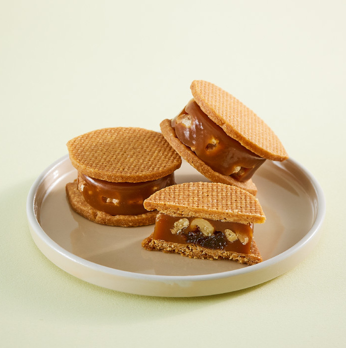 厚みのあるキャラメルクリームとサクサクのクッキーが絶妙な「くるみのキャラメルサンド」、