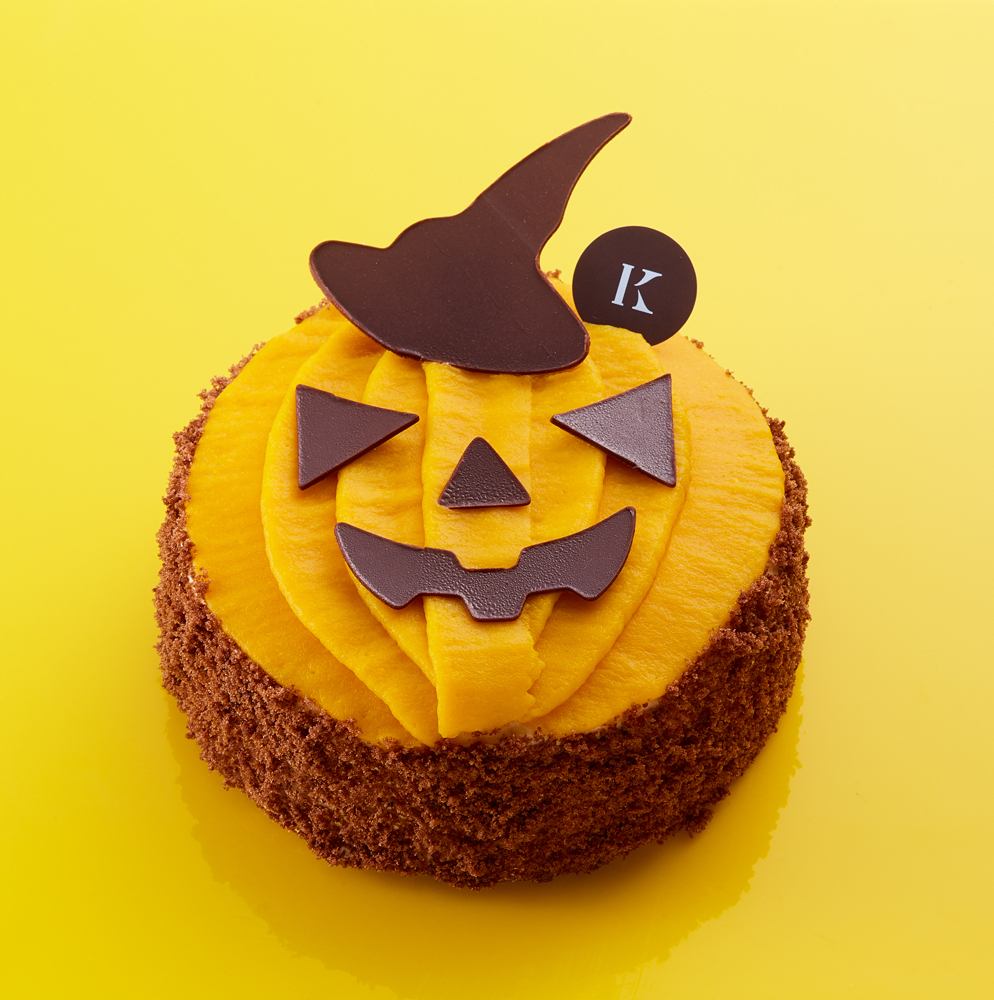 色あざやかなかぼちゃクリームとチョコレートでオバケの顔に仕上げました。