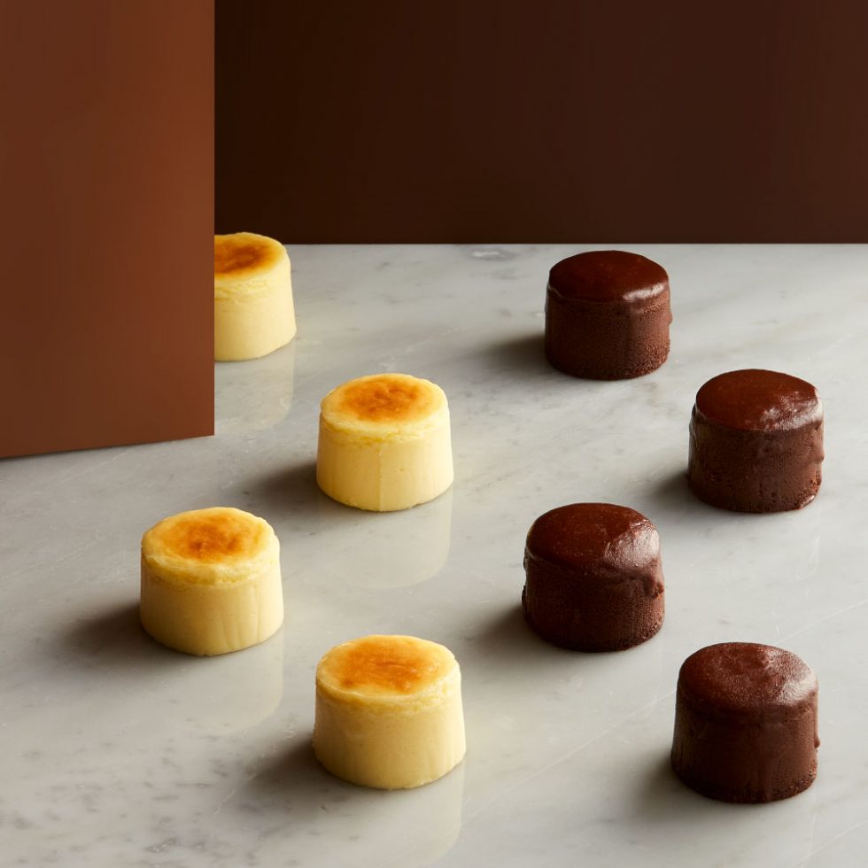 北海道産クリームチーズを使用した「チーズスフレ」と、ベルギー産のクーベルチュールチョコレートを使用した「チョコレートスフレ」の二種類の味をご用意しました。