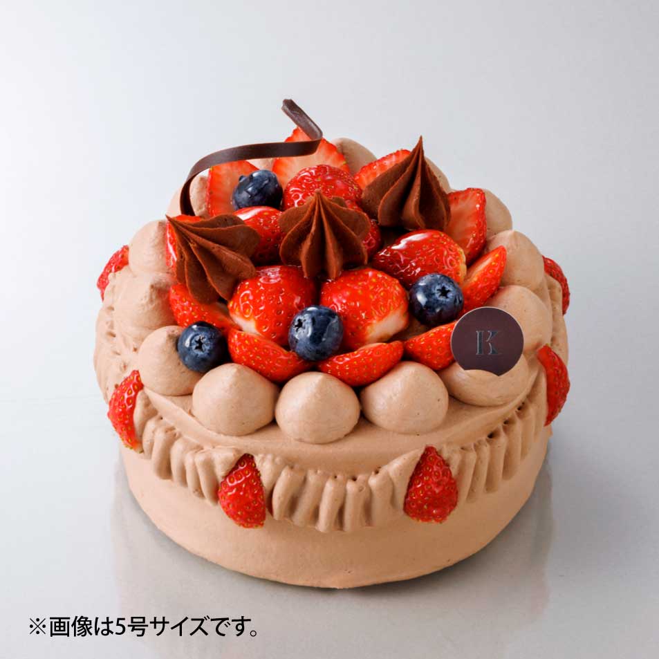 きのとや特製の生チョコレートといちご、ブルーベリーを飾り、口当たり軽やかな生チョコクリームで包み込んだとろける美味しさです。
