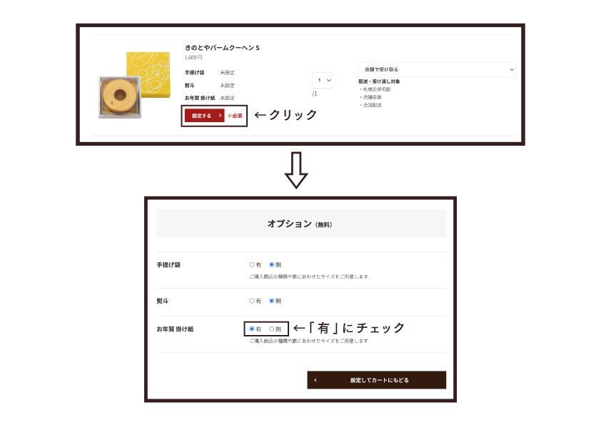 ※「お年賀 掛け紙」をつけた場合は、「熨斗」をおつけすることができません。