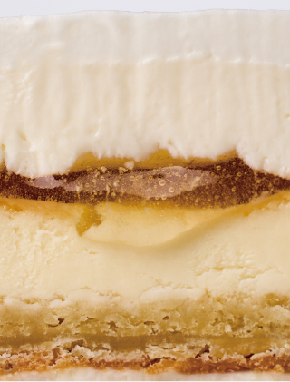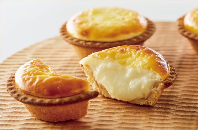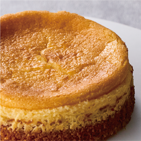 アーモンドプードルを使用したコクがありバターの香るクッキーに、アーモンド風味のしっとりと焼き上げた生地を重ねました。チーズケーキと合わさることでアーモンドの香ばしさとバターの深みがプレミアムな美味しさに。
