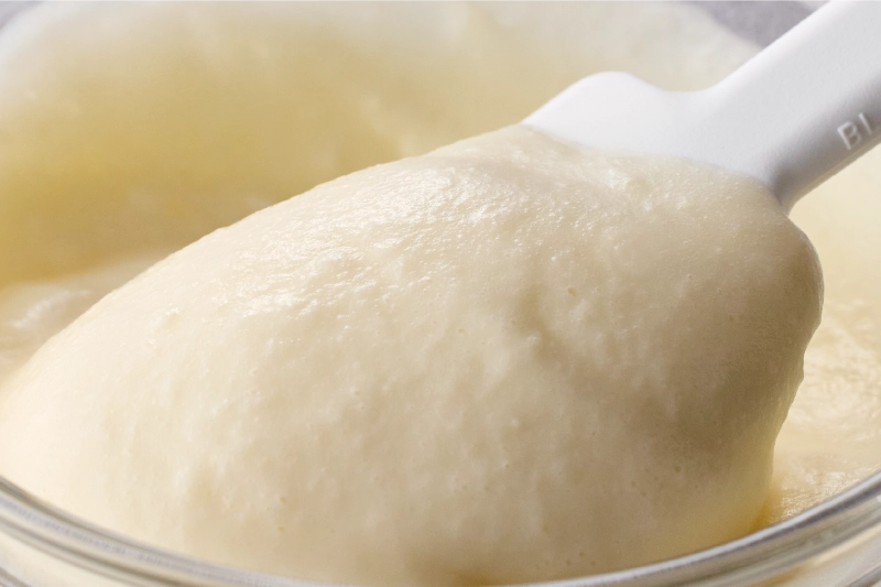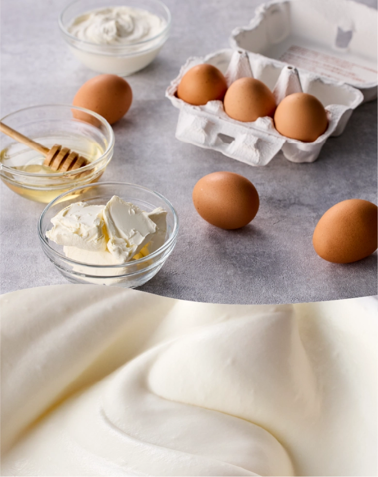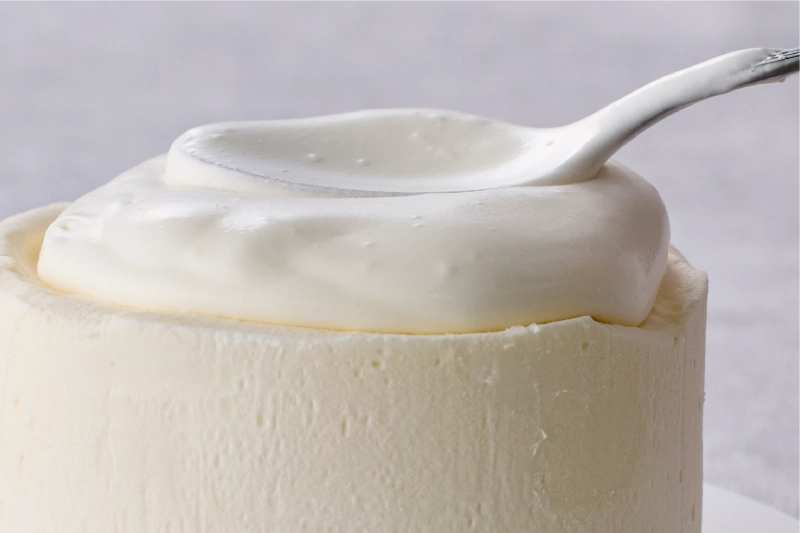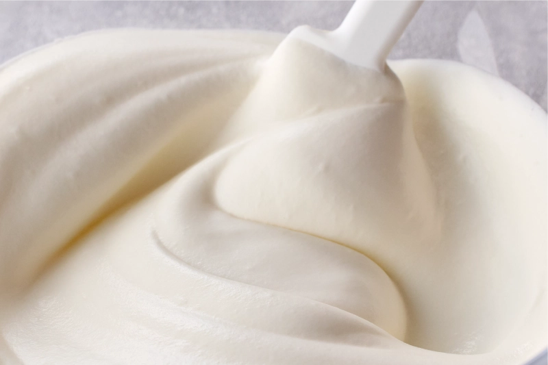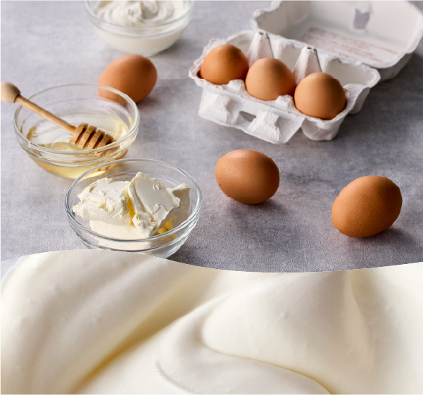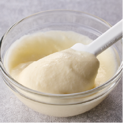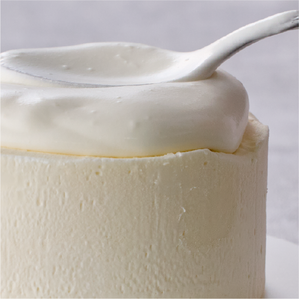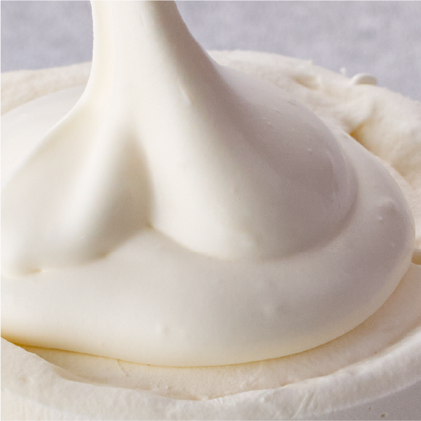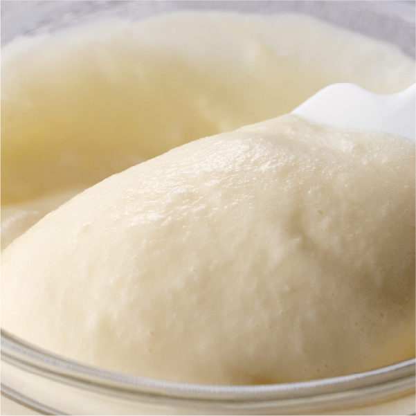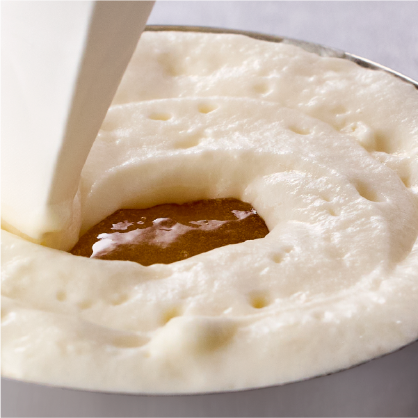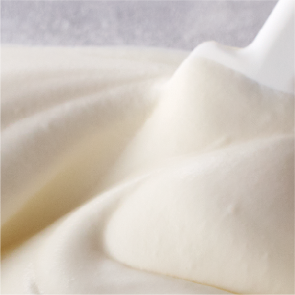 ミルクの濃厚な味わいに北海道産マスカルポーネを隠し味に加え、より一層ミルクが感じられるコクと深みのある“濃厚仕立て” のソフトクリームに、北海道産の生クリームをあわせて、ふんわりと泡立てました。まるでソフトクリームのような、とろけるようななめらかさの特製クリームです。