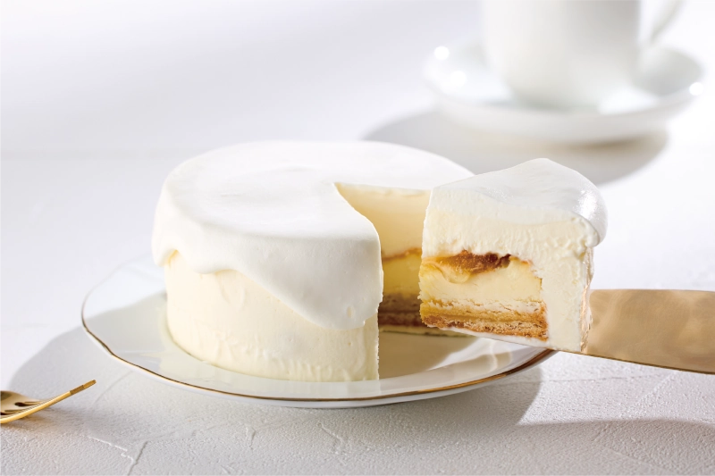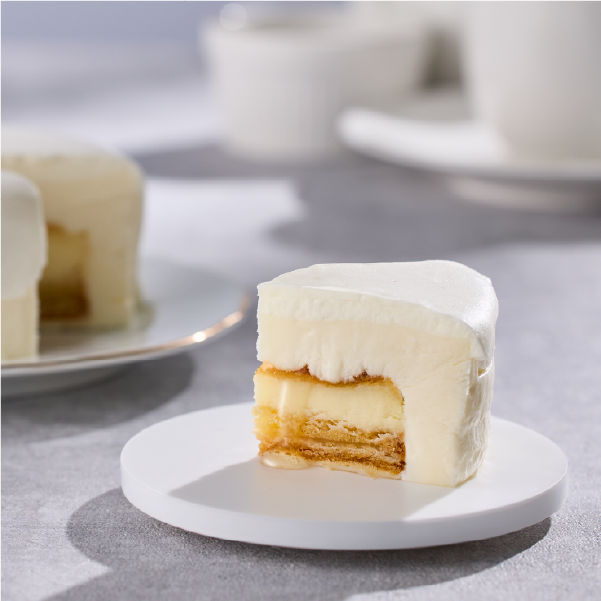 一番おいしい状態で食べてほしいから、できたての味を急速冷凍で閉じ込めました。まるで作りたてのようなクリームやムースの柔らかさを体験してください。