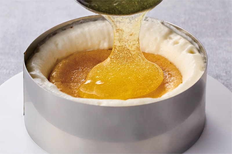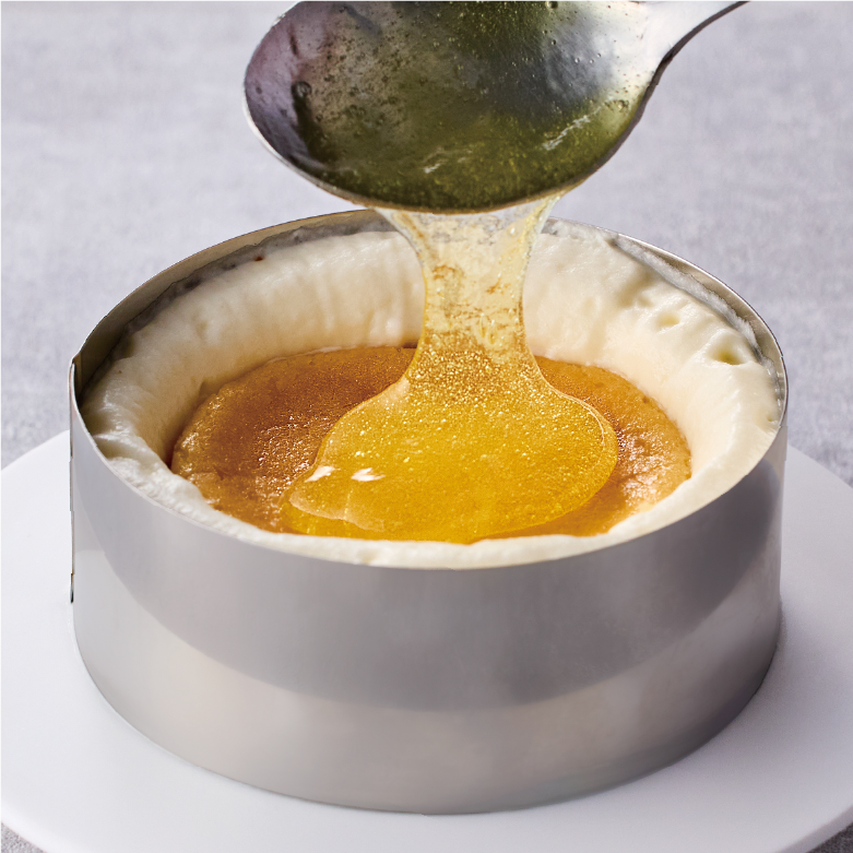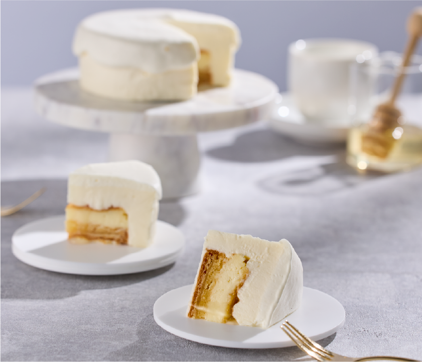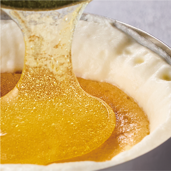 チーズケーキやクリームの味わいと相性のよい北海道産のアカシアはちみつをサンドしました。とろりととろけだすはちみつと一緒にお召し上がりいただくとほんのりとした甘さと上品な風味が楽しめます。