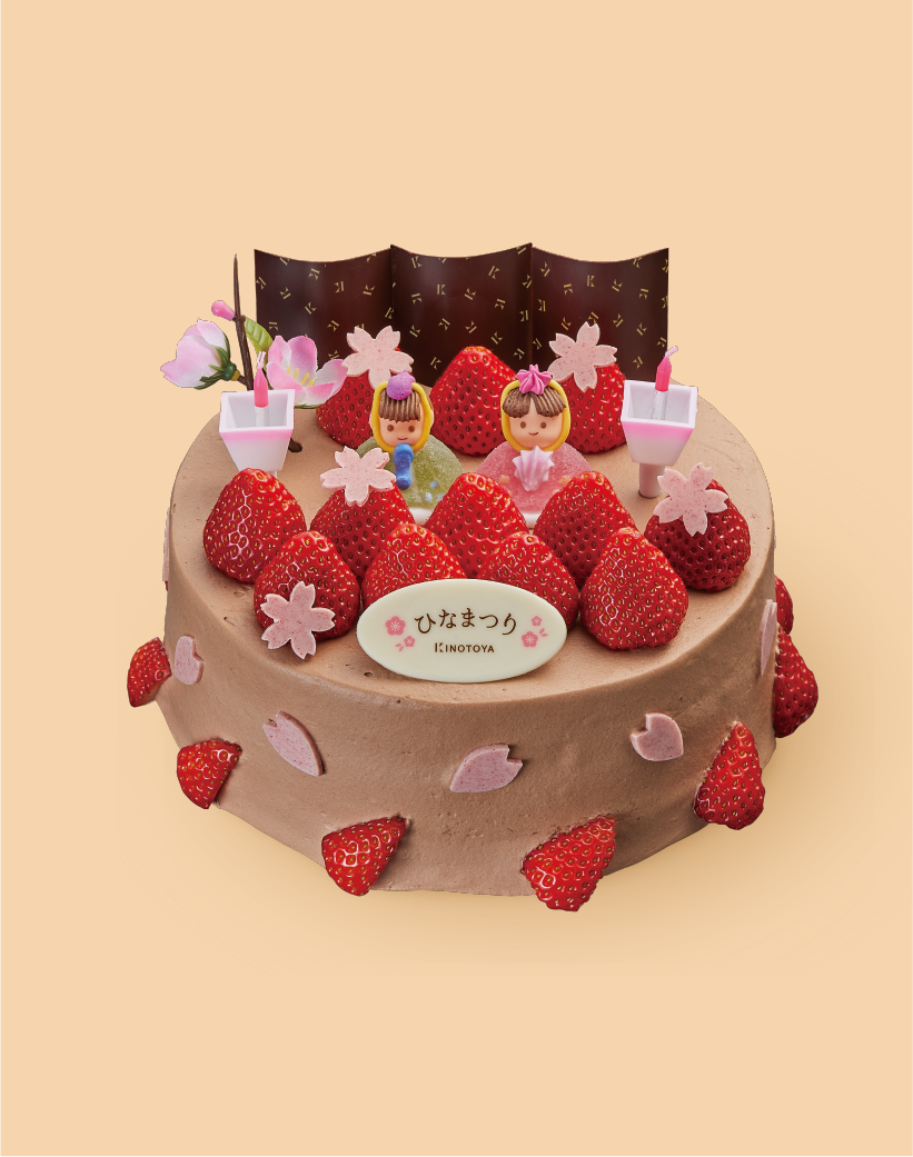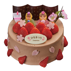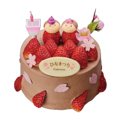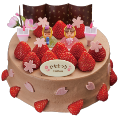 おひな様やいちご、サクラ型のチョコレートを飾り、口当たり軽やかな生チョコクリームでデコレーションしました。