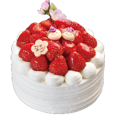 フレッシュな生クリームの上に、みずみずしい真っ赤ないちごをたっぷりと飾りました。ハレの日を華やかに彩るケーキです。