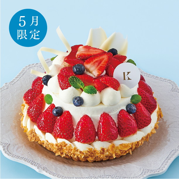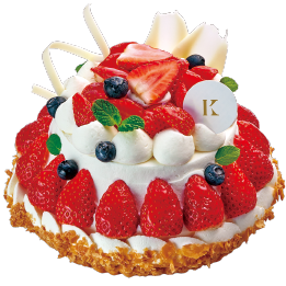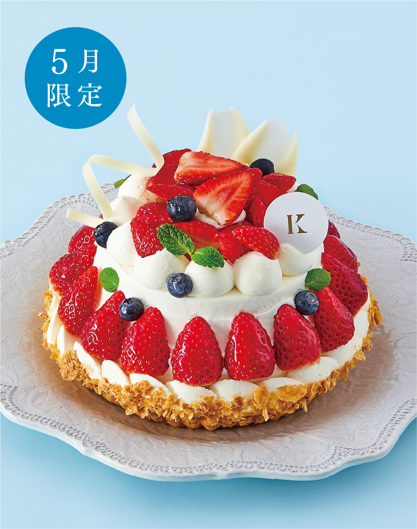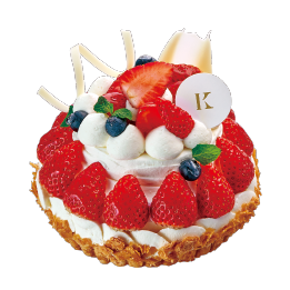 旬のイチゴをふんだんに使い、ベリーを飾ったボリュームたっぷりのケーキ。ベリーのさわやかな酸味と、生クリーム、カスタードクリーム、しっとりスポンジ、パイの香ばしさが相性ぴったりのおいしさです。